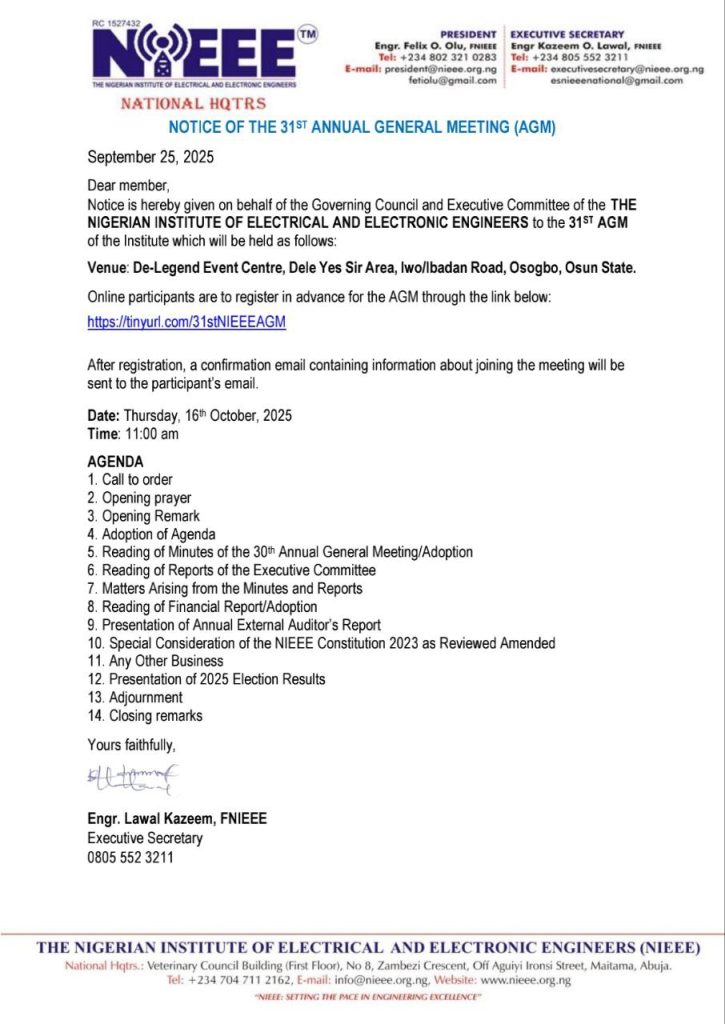You are on the website of The Nigerian Institute of Electrical and Electronic Engineers (NIEEE), which we enunciate as N.I. triple E.